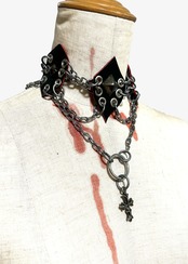 Handcrafted from black leather and heavy chains,