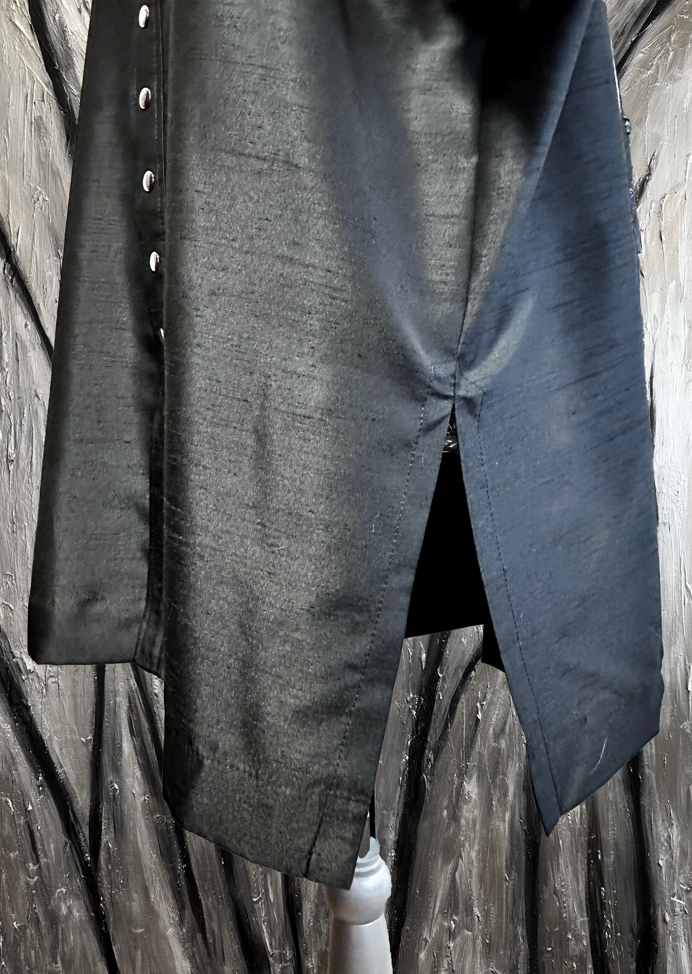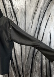 It looks and feels like a kimono at the moment you put your sleeves on it, even though it is completely Western in appearance and construction. It is reminiscent of the modern-day victory uniform of the Date(伊達) Army of the Warring States Period, which liked to be flashy. It is made right in front, just like a kimono, so it can be worn by both men and women. The unique sleeve shape and the design of the buttons on the cuffs give a sense of the outlandishness of the Date Army. Everyday is a special day, and we hope you will wear it for everyday use.